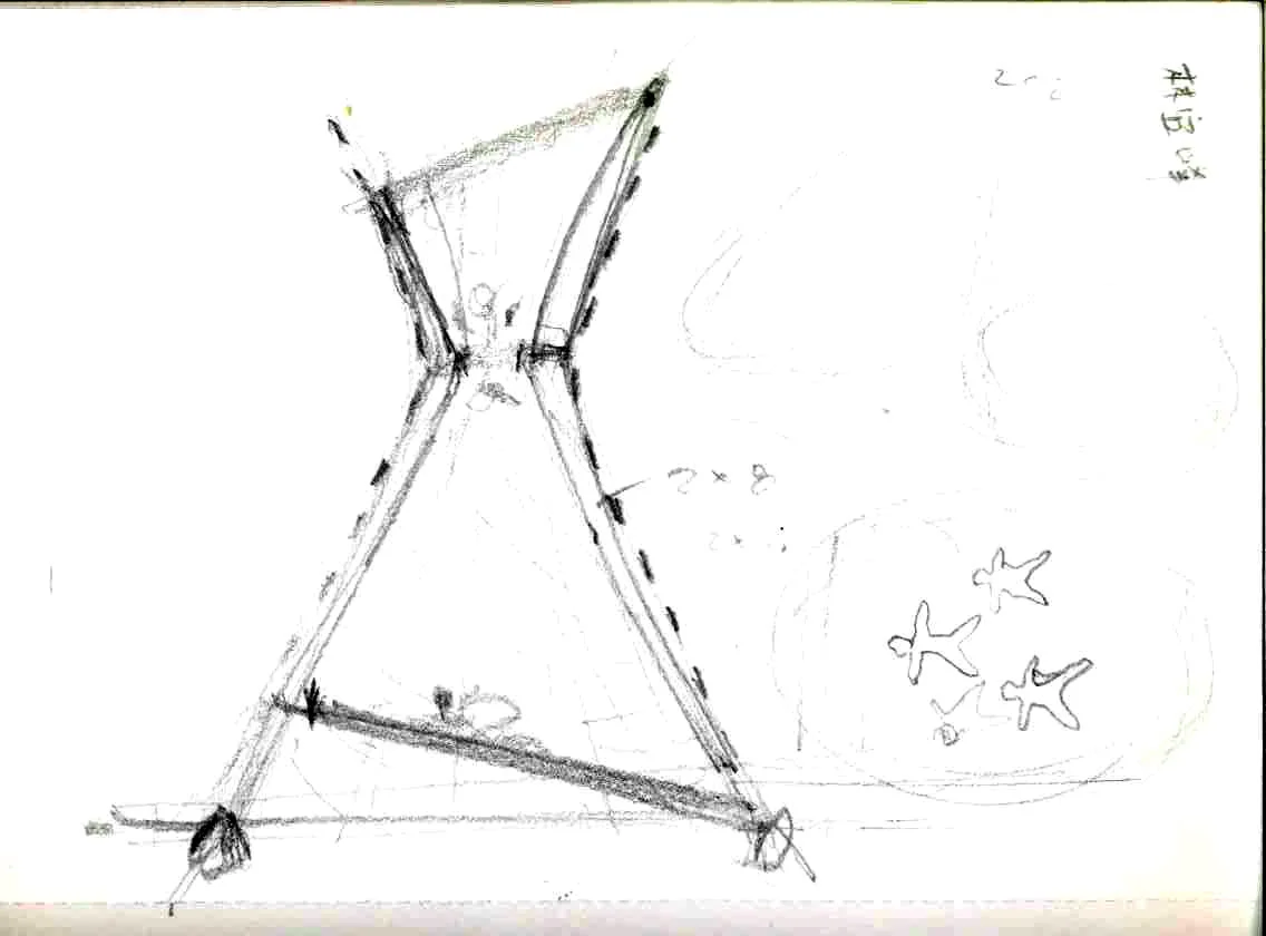 圓錐狀的帳幕則是由 2-2x6 的木材環繞組成的,藉由彩帶的編織,使這個帳幕外形如同一件新娘的晚禮服,立在 CMP 的青草地上。來到這裏,要從遠方傳來這首歌: