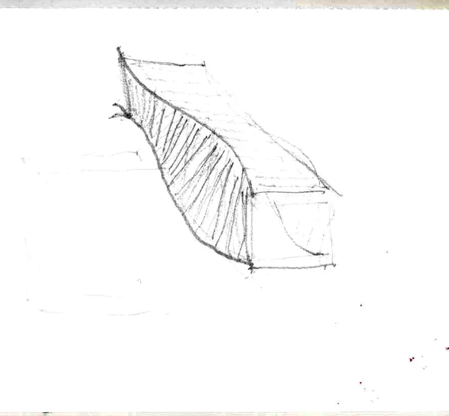 我希望這件戶外作品給人帶來歡樂與驚喜。走在廊道之中,要如同在戀愛中的人,步伐起伏如舞,心情忽上忽下。光線透過格柵灑入波浪般的廊道,明暗多變,不可捉摸;雖不甚明確,但卻又滿心期盼的被吸引著往前直走,一路上歡暢喜樂。